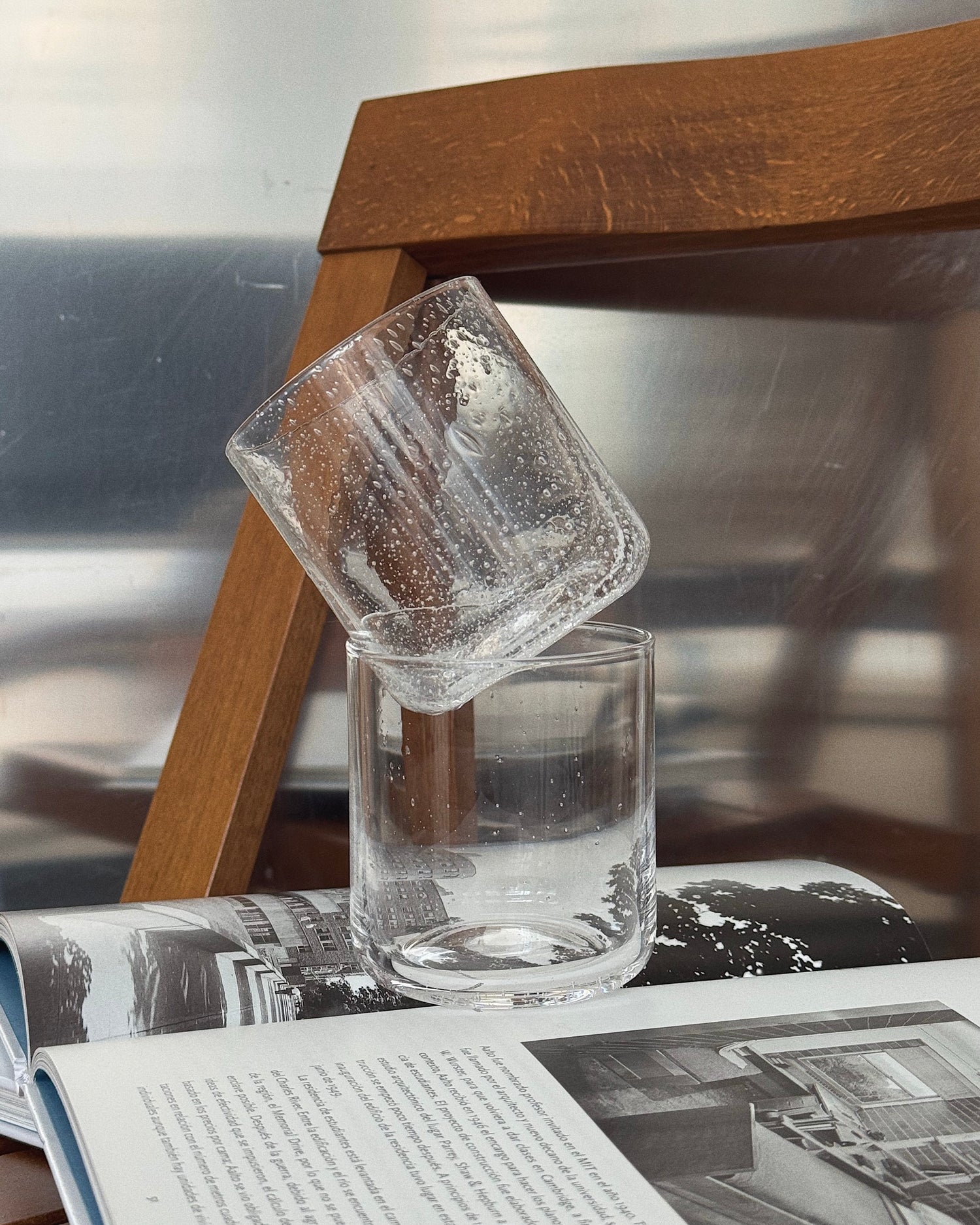 Soft air bubbles and gentle surface variations catch the light beautifully, adding quiet character to the clear glass. Designed for everyday use, this glass fits effortlessly into both casual and curated table settings.